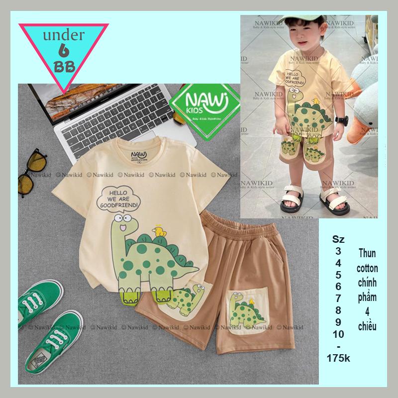 Đồ bộ bé trai dễ thương in hình Khủng Long siêu đáng yêu cho bé đi chơi , đi học