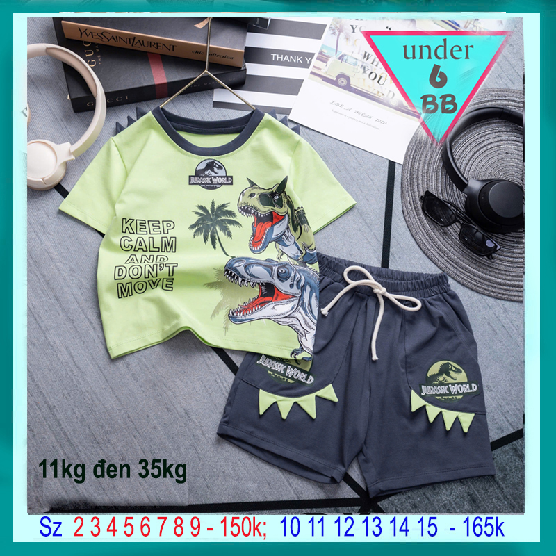 Đồ bộ bé trai dễ thương in hình Khủng Long Bạo Chúa cho bé đi chơi , đi học