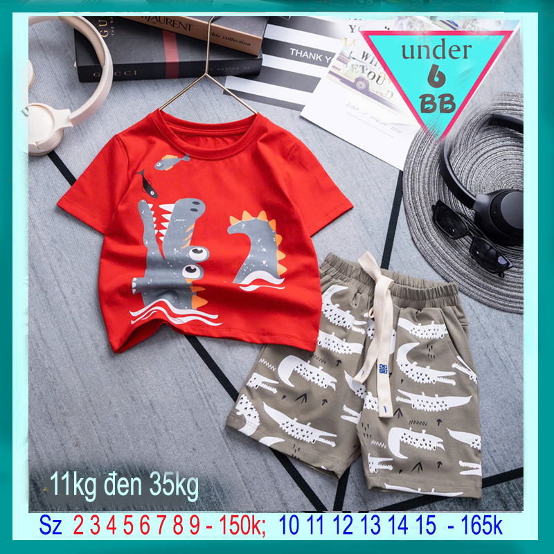 Đồ bộ bé trai dễ thương in hình Khủng Long dễ thương cho bé đi chơi , đi học