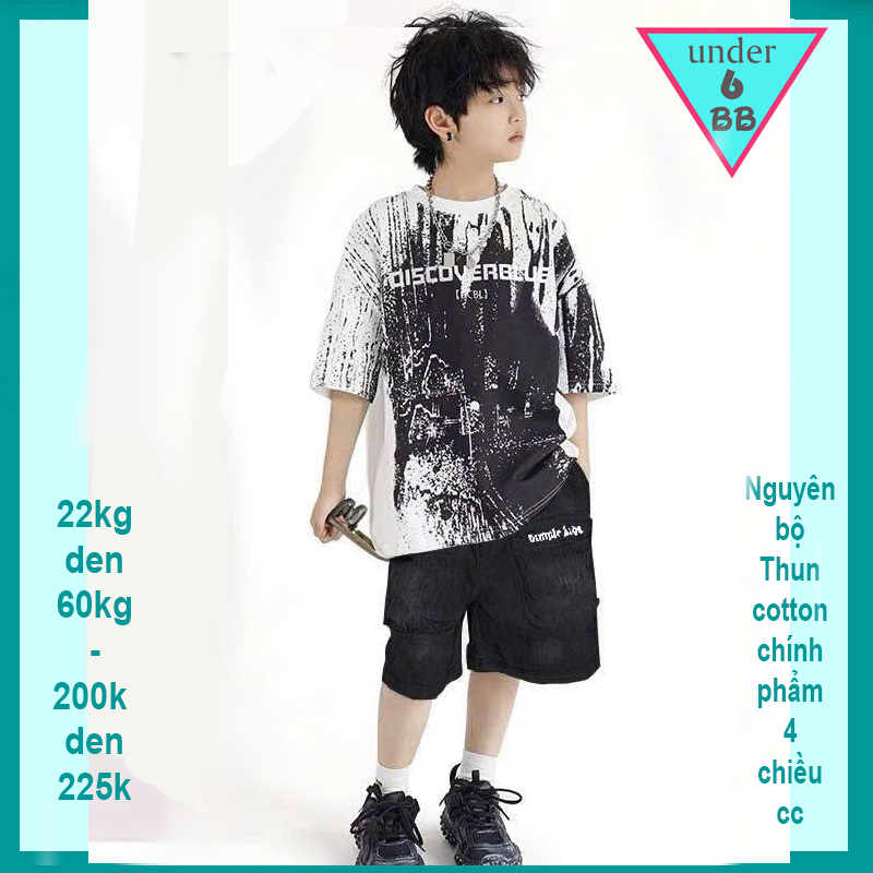 Đồ bộ bé trai hiphop in chữ phối vệt sơn phong cách cá tính dành cho bé đi chơi, du lịch