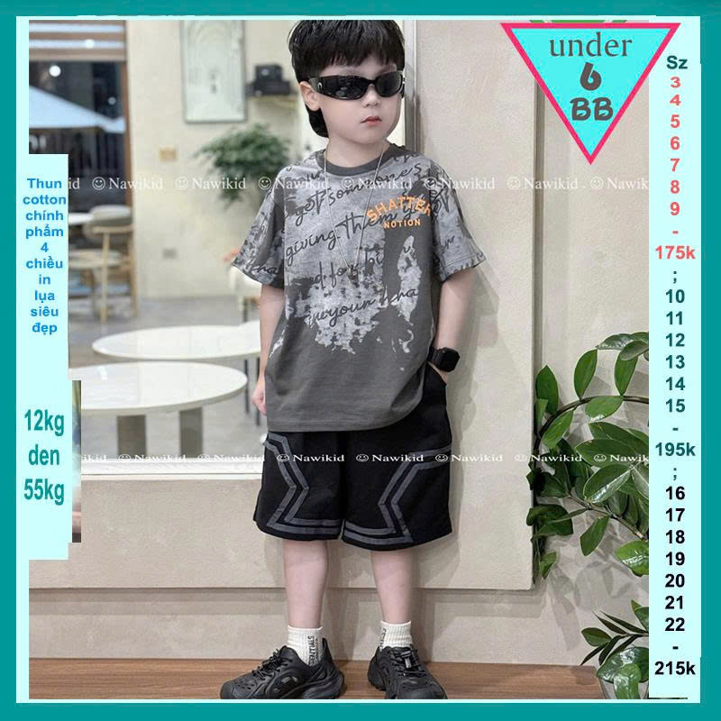 ​​​​Đồ Bộ cao cấp tay ngắn in họa tiết chữ phong cách cá tính cho bé trai đi chơi , đi học