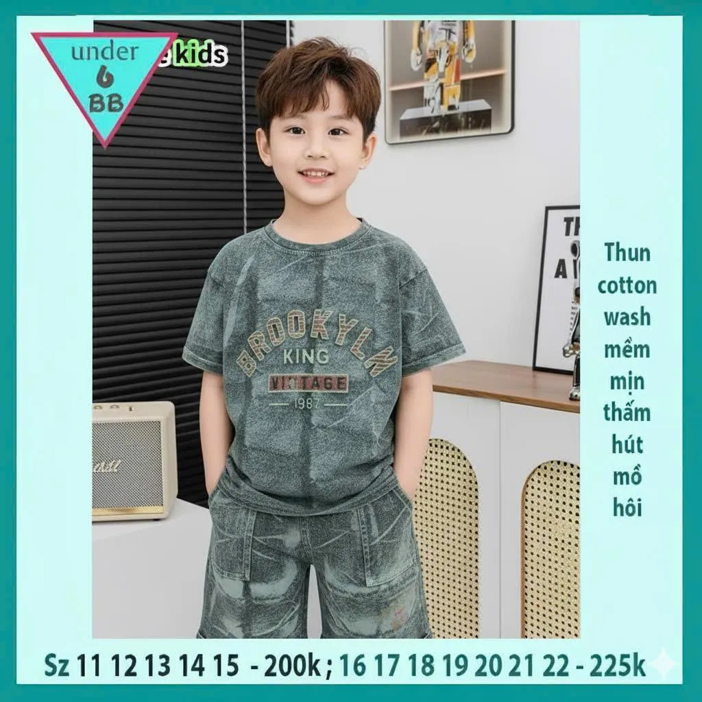 Quần áo bé trai ( Vải wash ) in chữ BROOKYLN phong cách cực ngầu cho bé đi chơi , du lịch