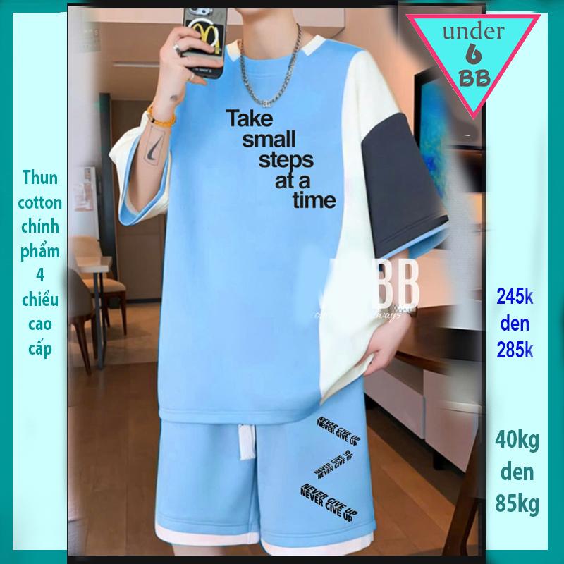 Quần áo bé trai size lớn in chữ Take small steps at a time phối màu cá tính cho bé đi chơi ,đi học