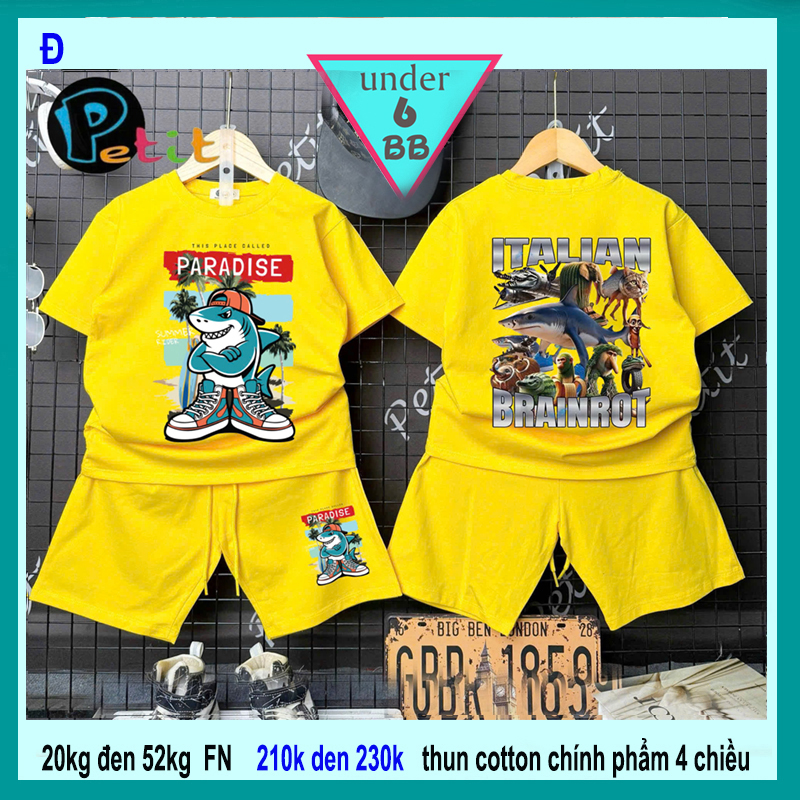 Set đồ bộ bé trai hoạt hình in hình Cá Mập Tralalelo Tralala siêu hottrend cho bé diện đi học , đi chơi ​​​​​​​