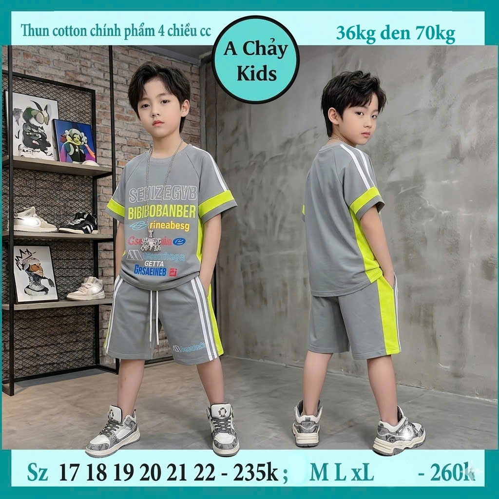 Set đồ bộ bé trai tay ngắn in chữ phong cách cá tính cho bé diện đi chơi , du lịch