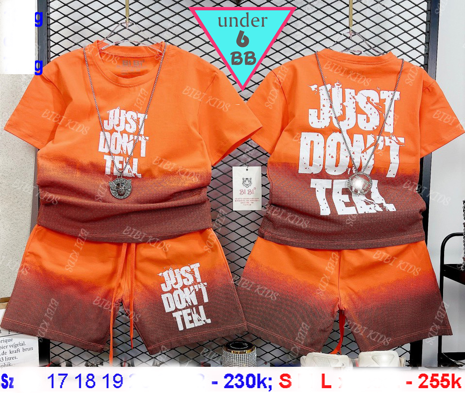 Set đồ bộ bé trai tay ngắn in chữ Just don't tell phối màu loang cá tính cho bé đi chơi , đi học