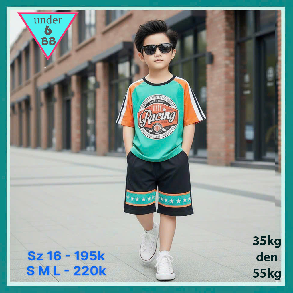 Đồ bộ bé trai cotton in chữ Racing phong cách đơn giản cho bé đi chơi , đi học