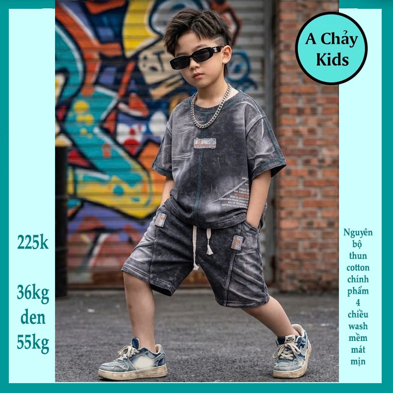 Đồ bộ bé trai cotton tay ngắn ( vải wash ) in chữ phong cách hiphop siêu ngầu cho bé diện đi chơi , du lịch