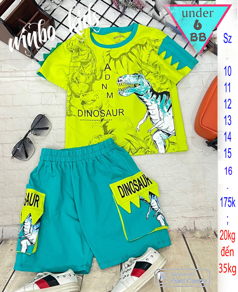 Đồ Bộ bé trai dễ thương tay ngắn in Hình khủng Long rừng xanh siêu đáng yêu cho bé đi chơi, đi học