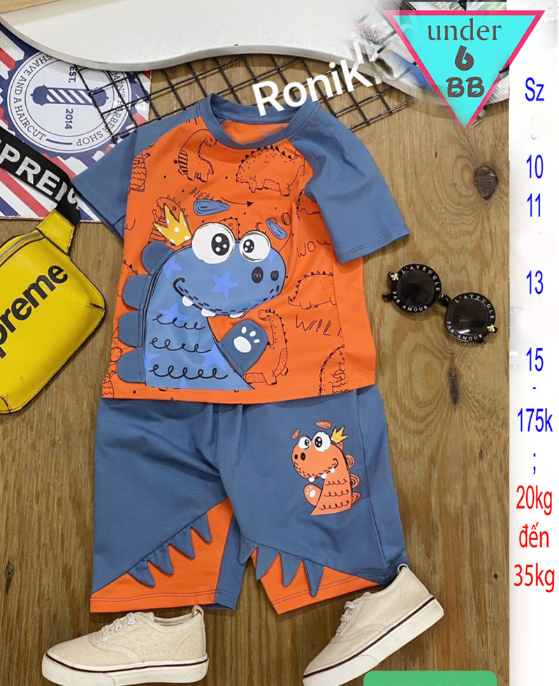 Đồ Bộ bé trai hoạt hình in hình khủng long có vẩy siêu đáng yêu cho bé đi chơi , đi học