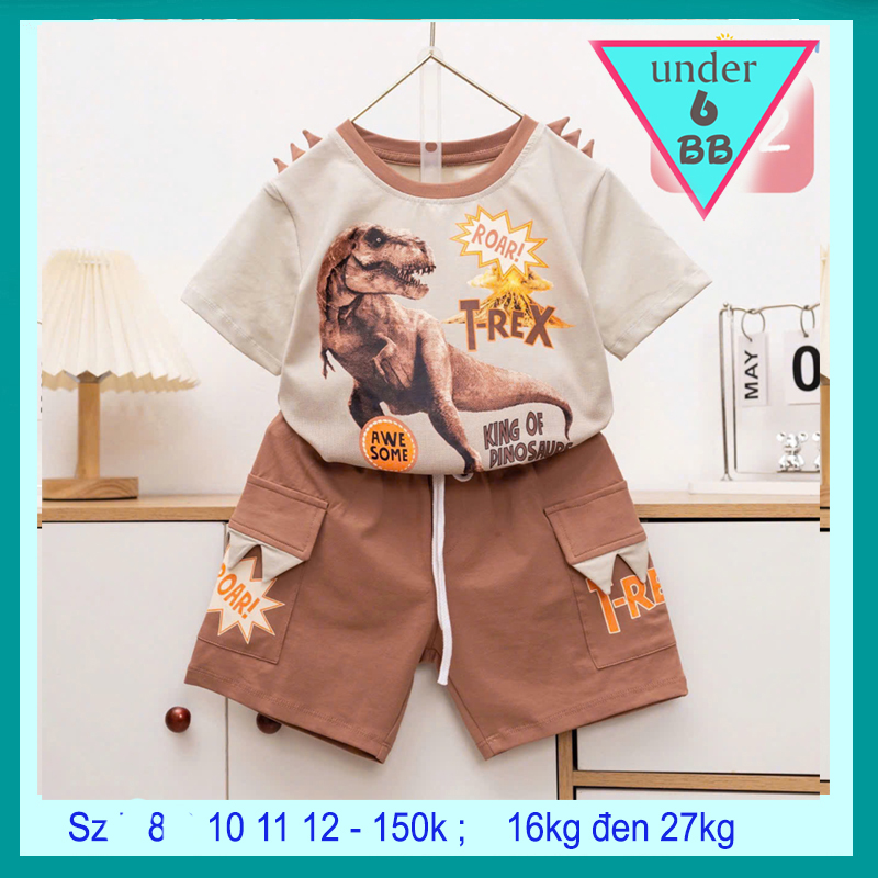 Đồ bộ bé trai hoạt hình in hình Khủng Long bạo chúa cá tính cho bé đi chơi , đi học