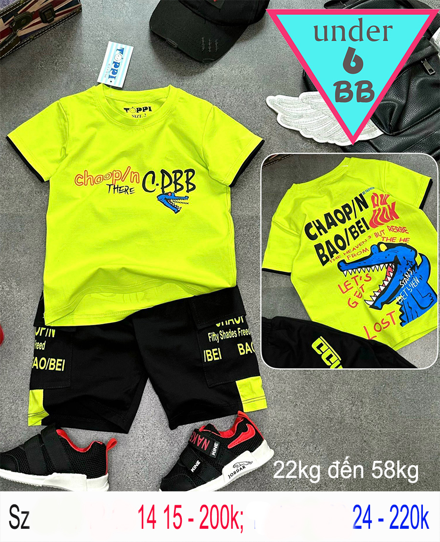 Đồ Bộ bé trai hoạt hình in Cá Sấu cá tính cho bé đi chơi , đi học