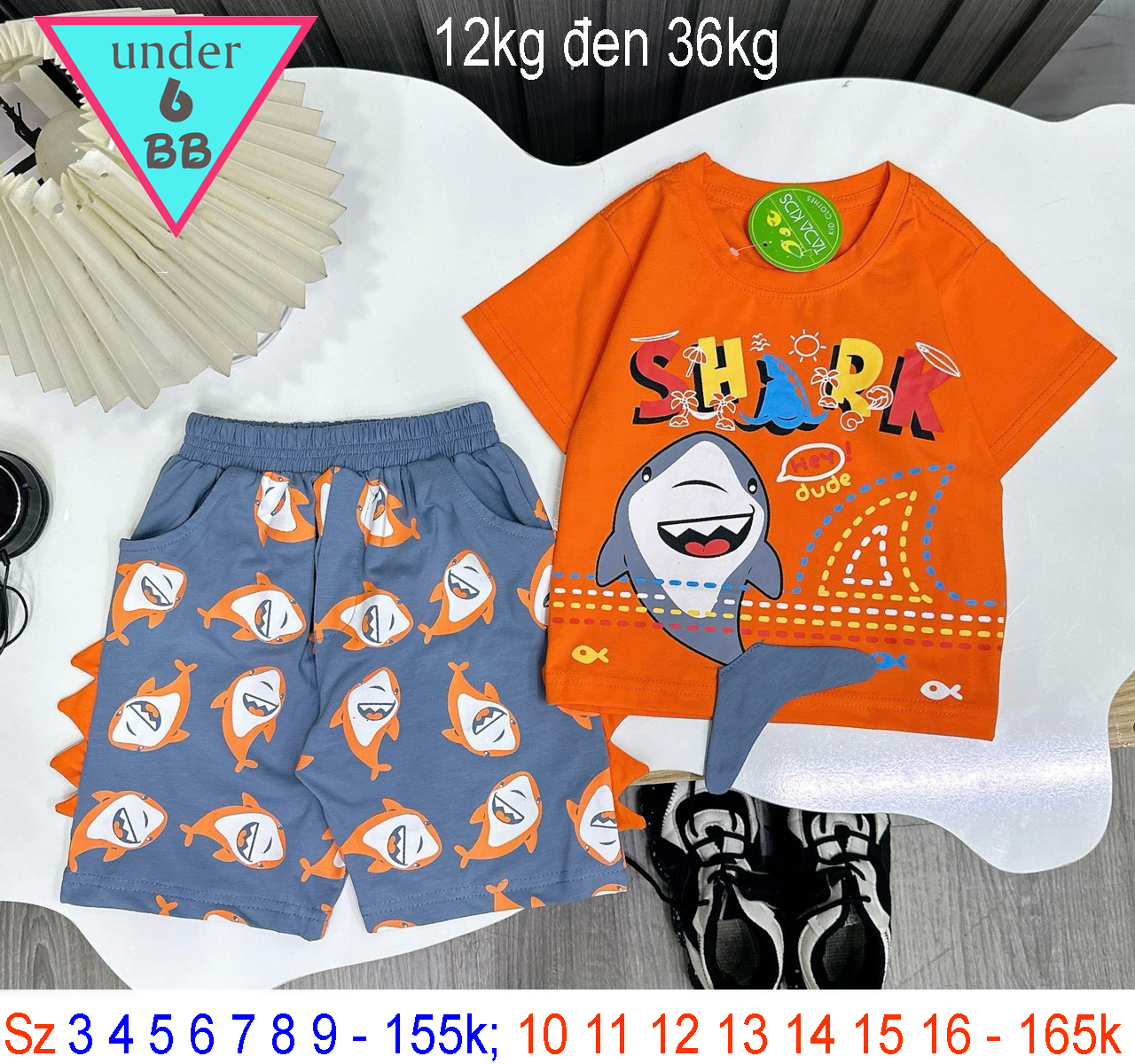 Đồ Bộ bé trai dễ thương tay ngắn in hoạt hình cá mập SHARA siêu đáng yêu cho bé đi chơi , đi học