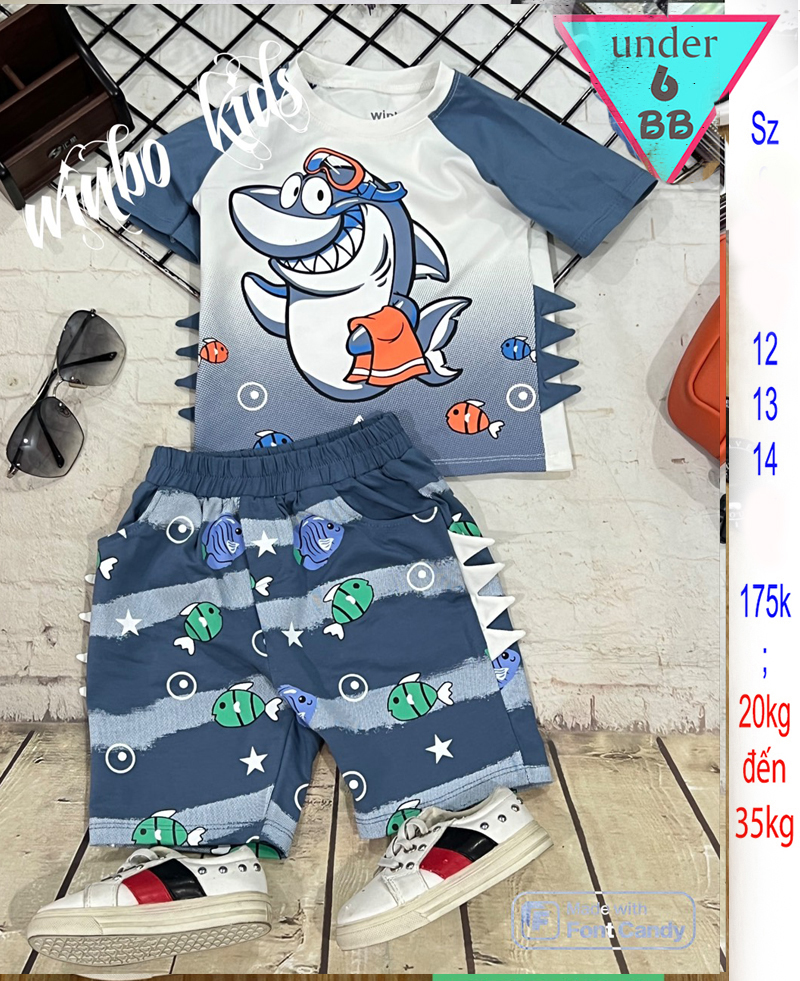 Đồ Bộ bé trai dễ thương tay ngắn in hình cá mập màu loang siêu đáng yêu cho bé đi chơi , đi học
