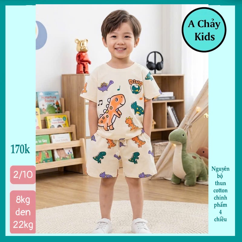 Đồ bộ bé trai dễ thương in Khủng Long siêu đáng yêu cho bé đi chơi , đi học