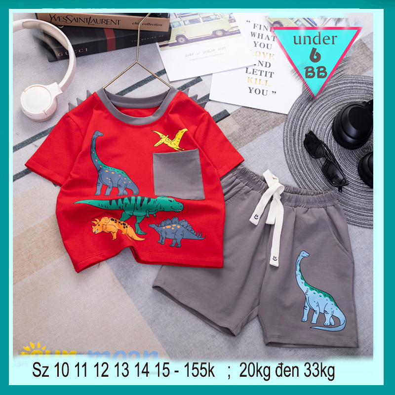 Đồ bộ bé trai dễ thương in hình Khủng Long Bạo Chúa cho bé yêu diện đi chơi , đi học