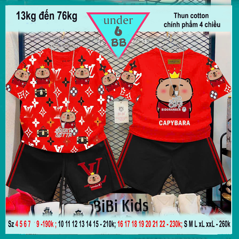 Set đồ bộ bé trai hoạt hình in hình Cappybara dễ thương cho bé đi chơi , đi học