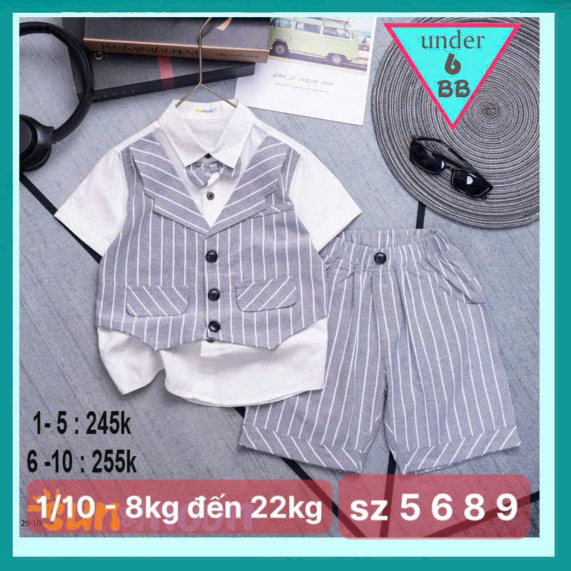 Bộ vest cho bé dự thôi nôi dự tiệc in sọc phong cách cực sang cho bé yêu