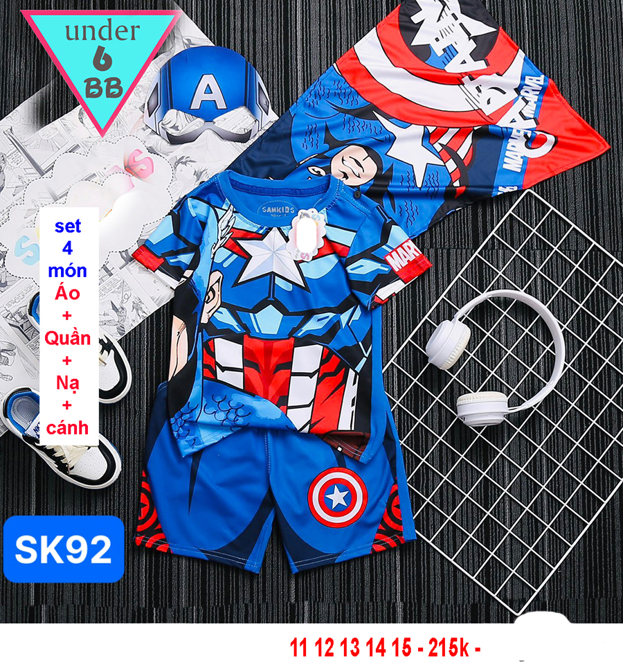 Quần áo bé trai siêu nhân in hình 3D siêu nhân Đội Trưởng Mỹ - Captain America cho bé đi chơi , đi học