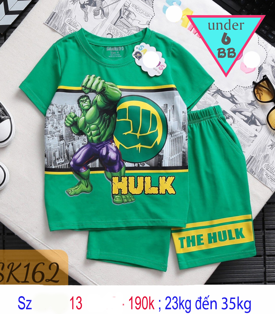 Quần áo bé trai siêu nhân in hình Khủng Lồ Xanh cho bé đi chơi , đi học