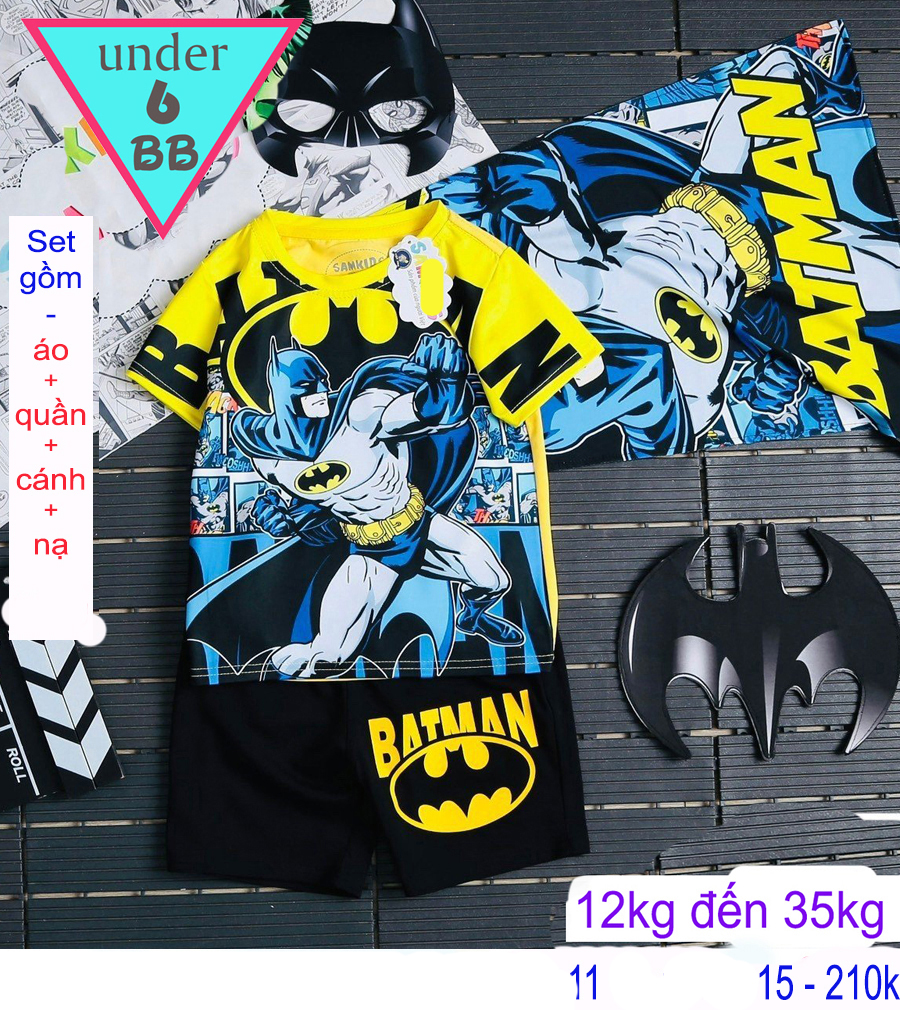 Quần áo bé trai siêu nhân tay ngắn in hình 3D Siêu Nhân Người Nhện- Batman