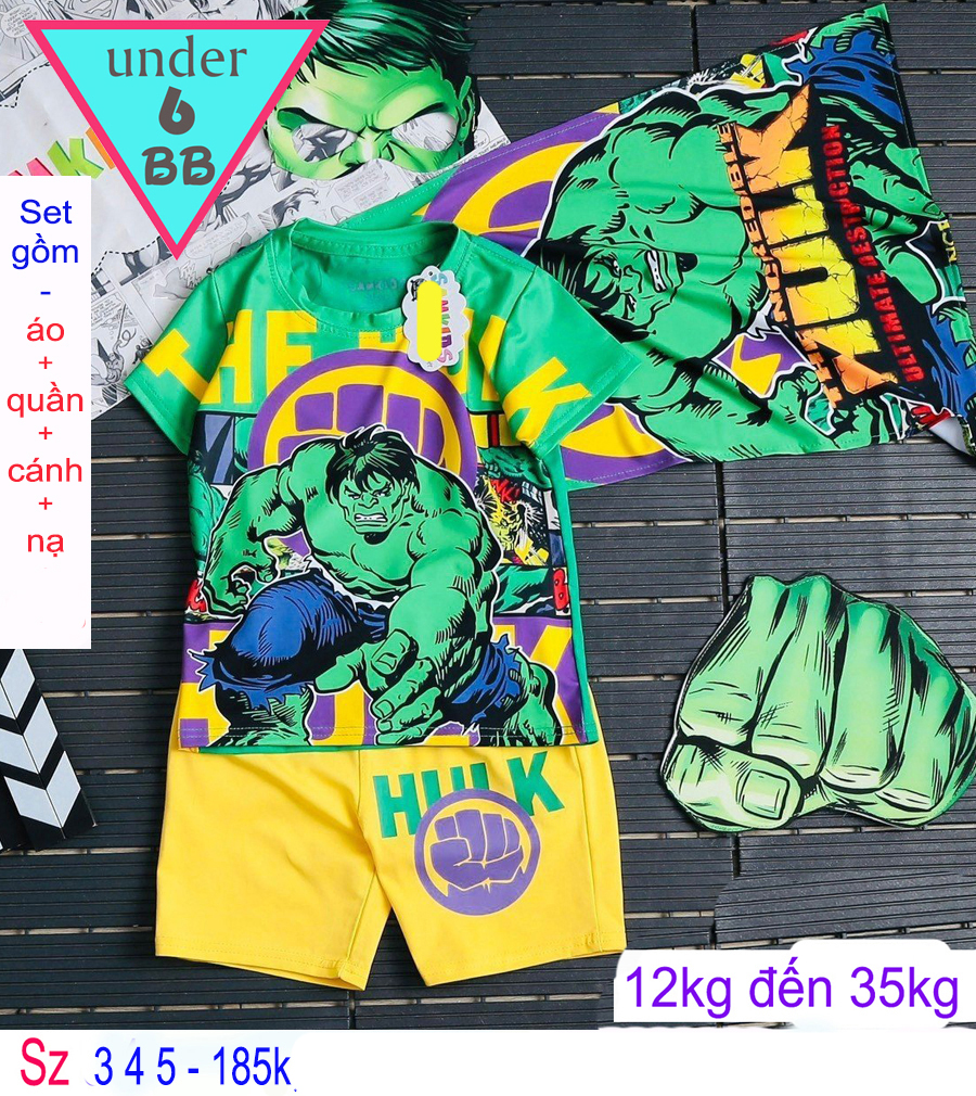 Quần áo bé trai siêu nhân tay ngắn in hình 3D Khổng Lồ Xanh