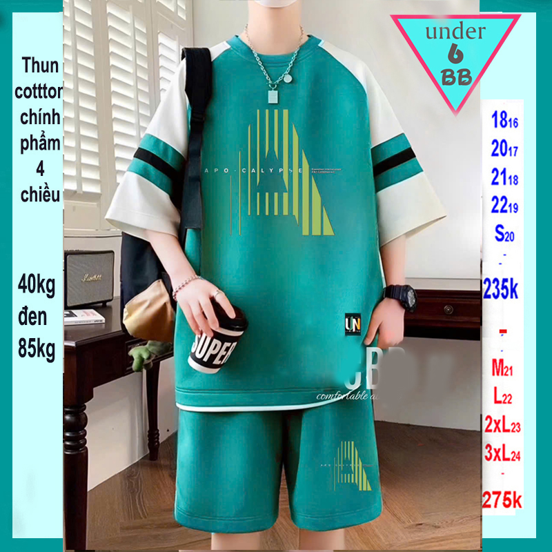 -Chất liệu sp : Nguyên Bộ vải thun cotton cao cấp, mát, mịn, co giãn 4 chiều, thấm hút mồ hôi.