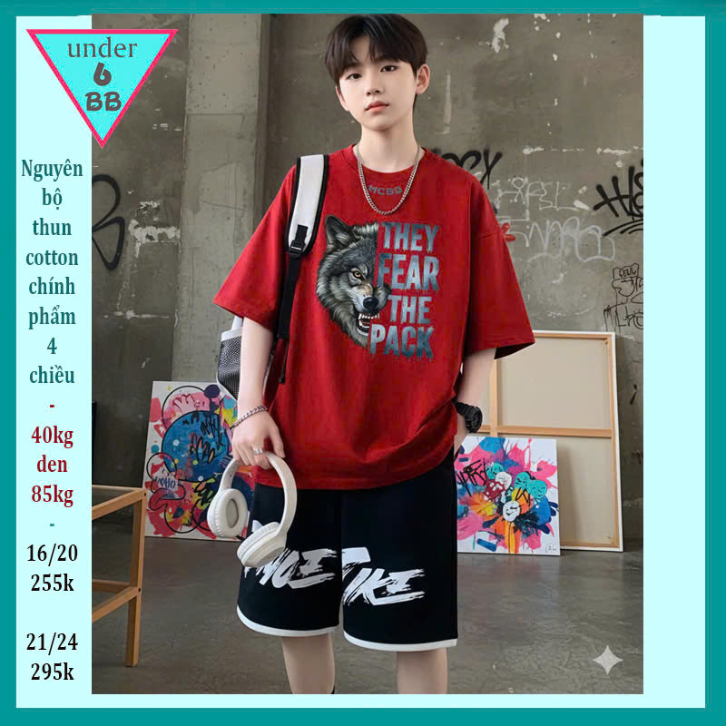 Quần áo bé trai size lớn in hình Chó Sói siêu ngầu cho bé lớn đi chơi , đi học