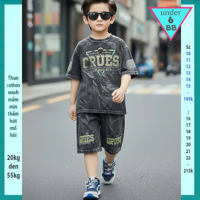 Quần áo bé trai ( vải wash ) in chữ phong cách thời trang cá tính siêu ngầu cho bé diện đi chơi , đi du lịch
