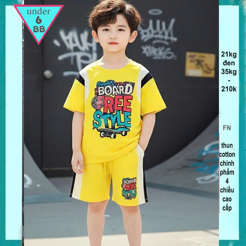 Quần áo bé trai in chữ phối màu cực sang mang phong cách cá tính cho bé diện đi chơi , đi du lịch