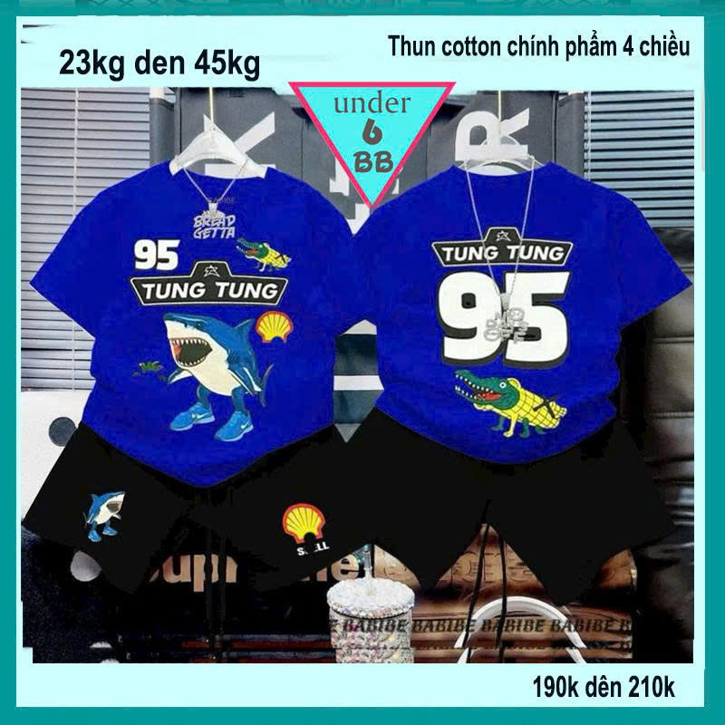 Set đồ bộ bé trai hoạt hình in hình Cá Mập Tralalelo Tralala siêu hottrend cho bé diện đi học , đi chơi