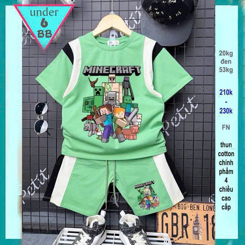 Set đồ bộ bé trai hoạt hình in hình Minecraft phối màu cá tính cho bé diện đi chơi , đi học