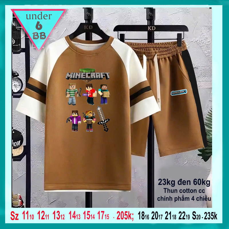 Set đồ bộ bé trai hoạt hình in Minecraft phong cách cá tính cho bé đi chơi ,đi học