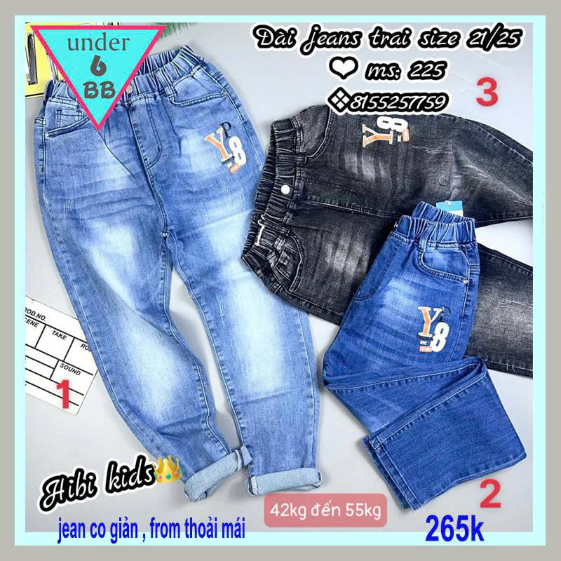 Quần jean dài bé trai ( HB : 225.3 - 42kg đến 55kg )