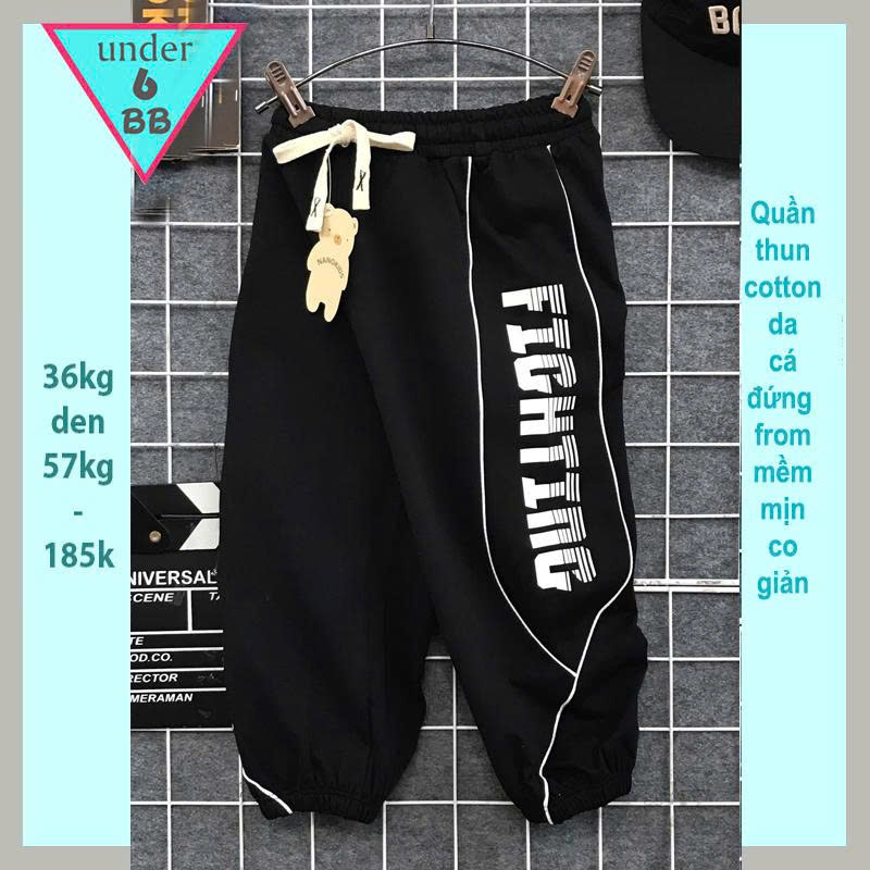 Quần thun dài bé trai (34kg đến 52kg ) in chữ FIGHTING đơn giản dễ dàng phối áo cho bé diện đi chơi , du lịch