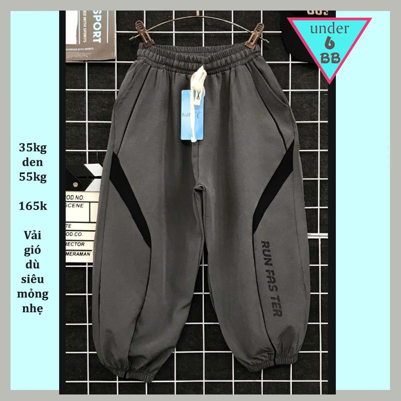 Quần vải dù dài bé trai in chữ ( 35kg đến 55kg )