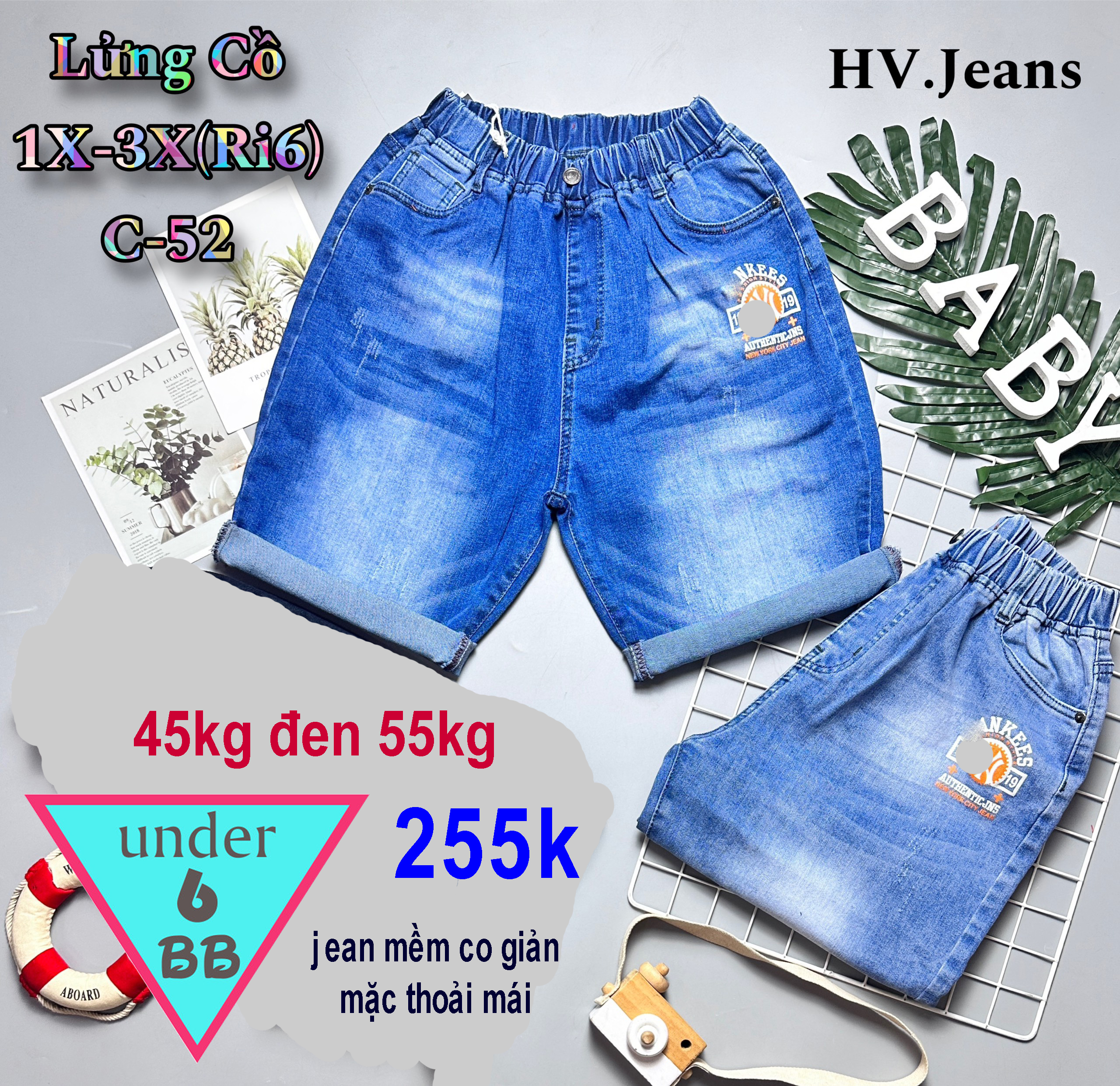 - Quần jean ngắn cho bé 45kg đến 55kg