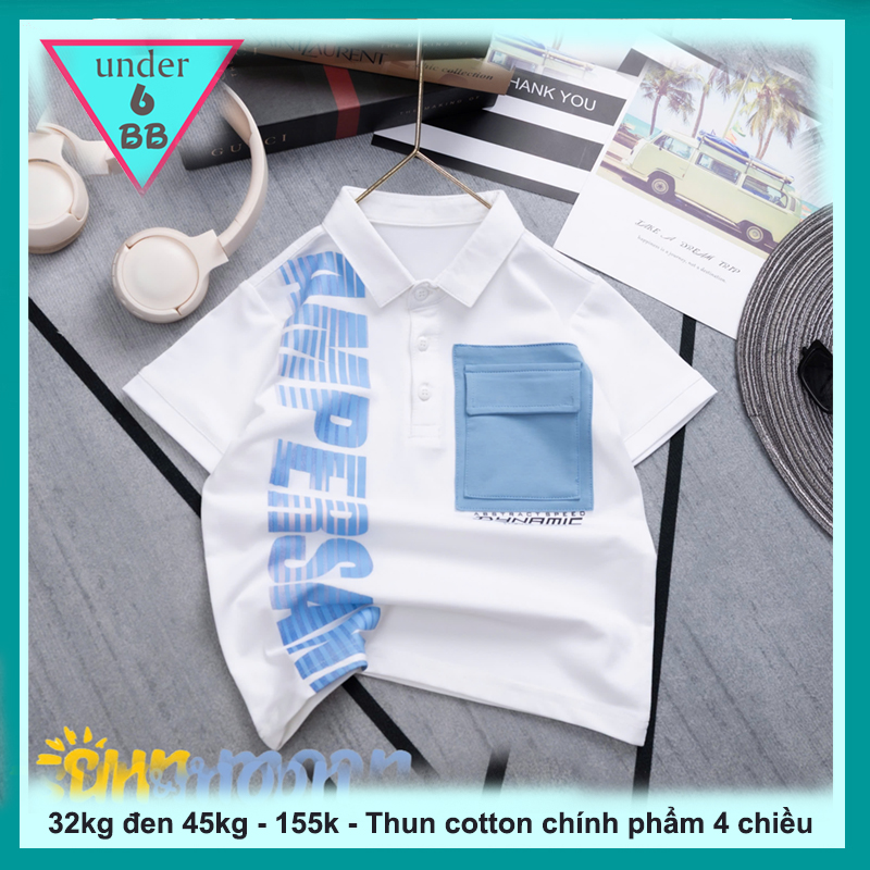 Áo thun có cổ cho bé trai in chữ phong cách thời trang cá tính cho bé diện đi chơi , đi tiệc
