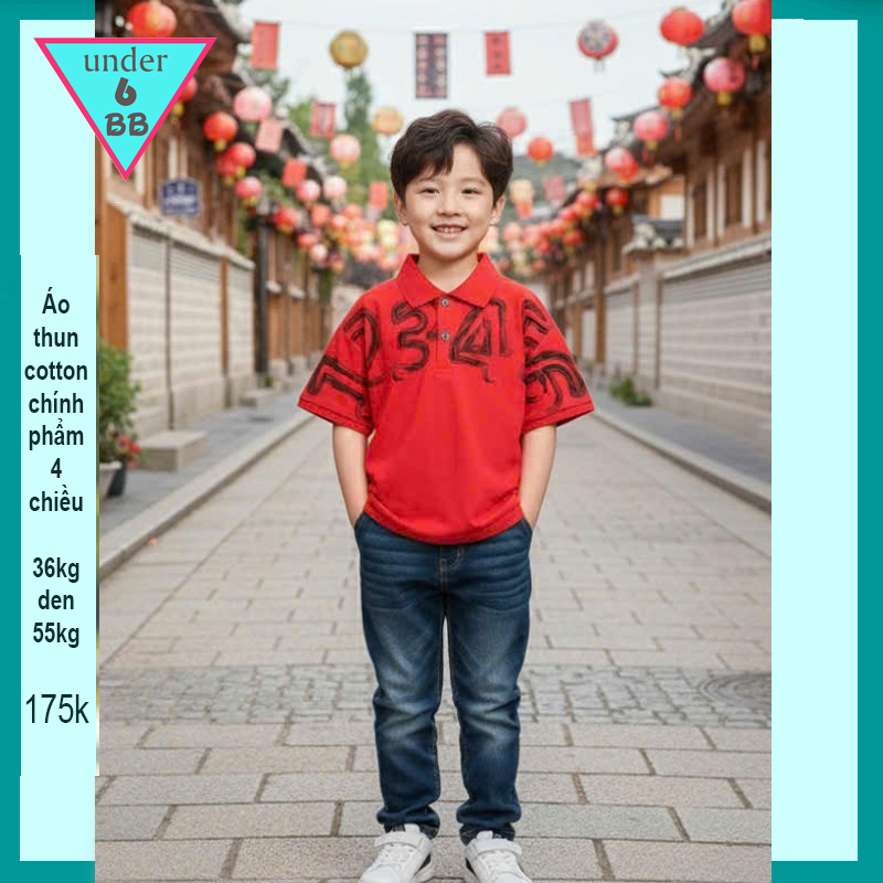 - Áo thun bé trai cho bé 36kg đến 55kg
