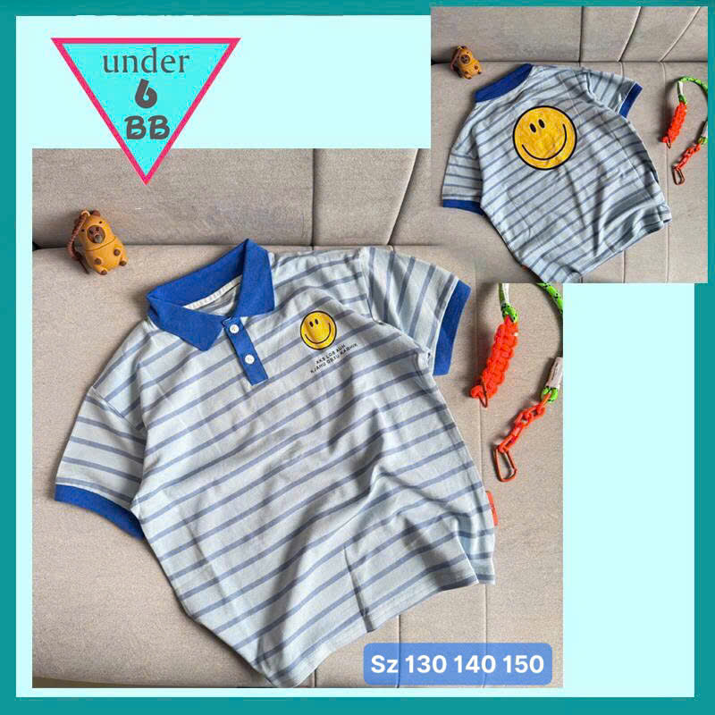 Áo thun polo bé trai in sọc phối sau áo mặt cười siêu dễ thương cho bé diện đi chơi , đi tiệc