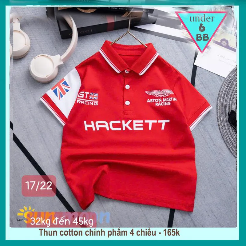 Áo polo bé trai in chữ HACKEET phong cách thời trang cá tính cho bé đi chơi , đi học
