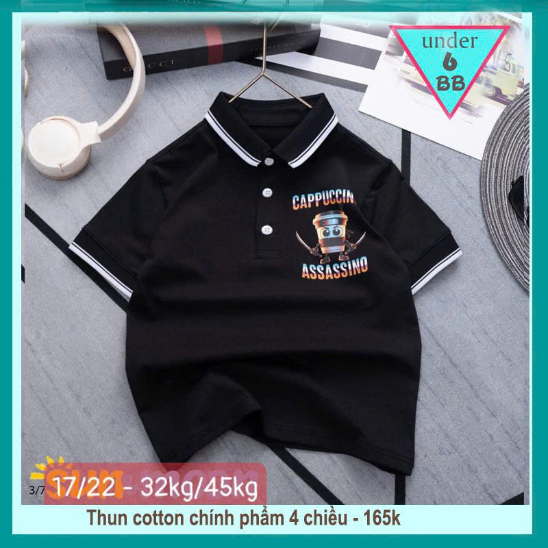 Áo thun có cổ cho bé trai in hình Capuchino Assassino siêu hottrend phong cách cá tính cho bé đi chơi ,du lịch