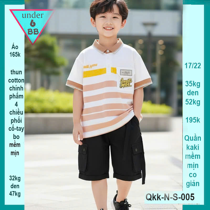 Áo thun có cổ cho bé trai in sọc phong cách thời trang cá tính cho bé diện đi chơi , du lịch