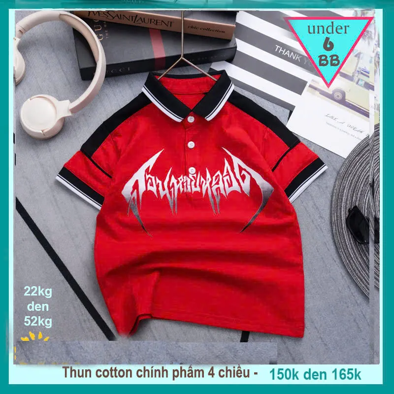 Áo polo bé trai in chữ phong cách cá tính cho bé diện đi chơi , đi tiệc