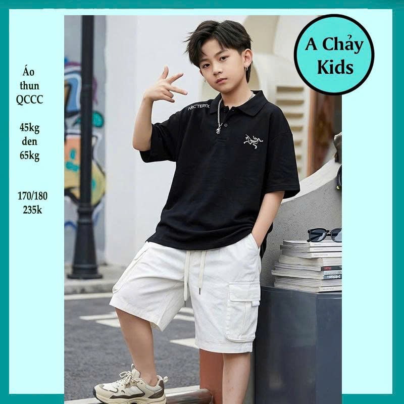 Áo polo bé trai in chữ phong cách cực sang cho tuổi teen diện đi chơi , đi lễ