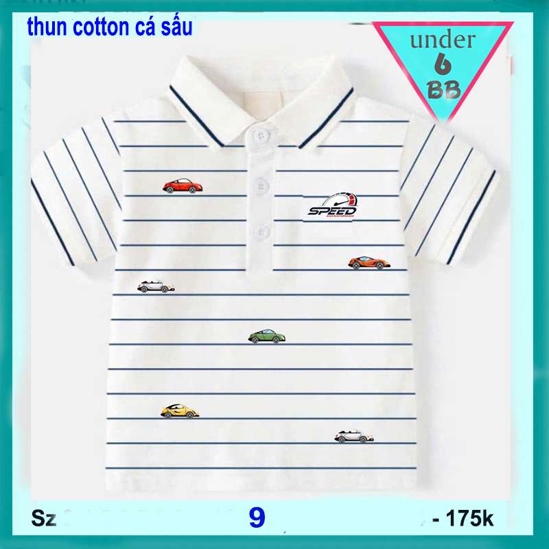 Áo thun bé trai có cổ ( vải cá sấu) in họa tiết xe hơi phối sọc cho bé đi chơi , đi tiệc