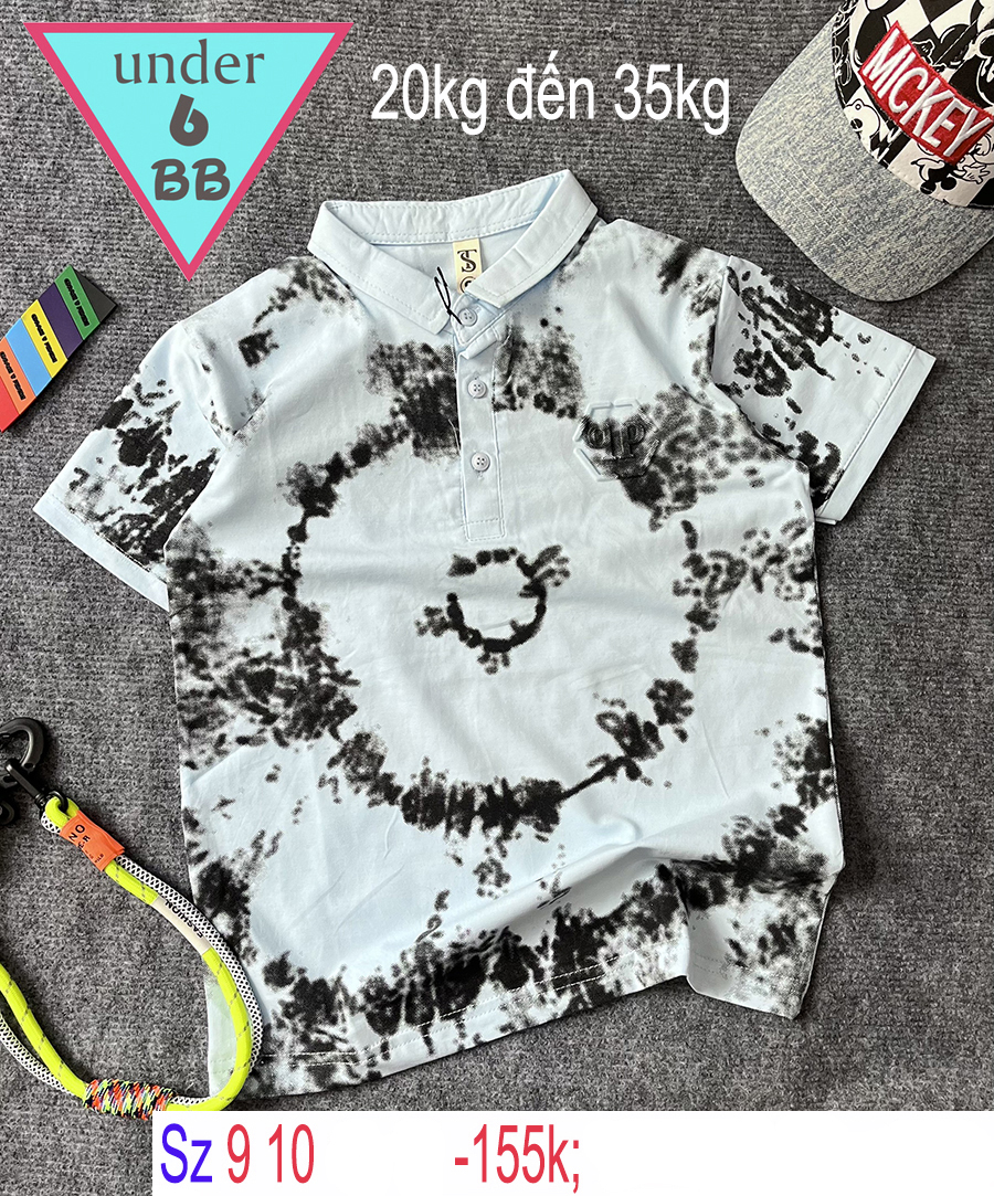 Áo thun bé trai có cổ màu loang phong cách cá tính cho bé đi chơi , đi tiệc
