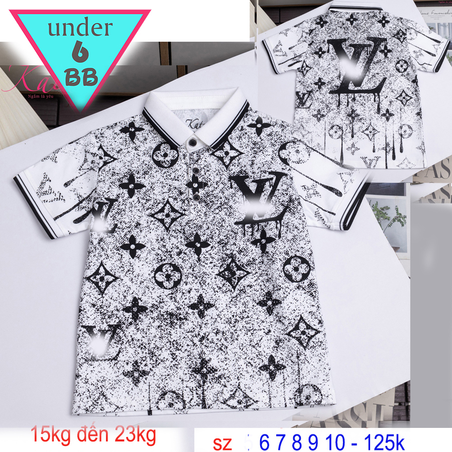 Áo thun polo bé trai in chữ phối màu loang cá tính cho bé đi chơi , đi học