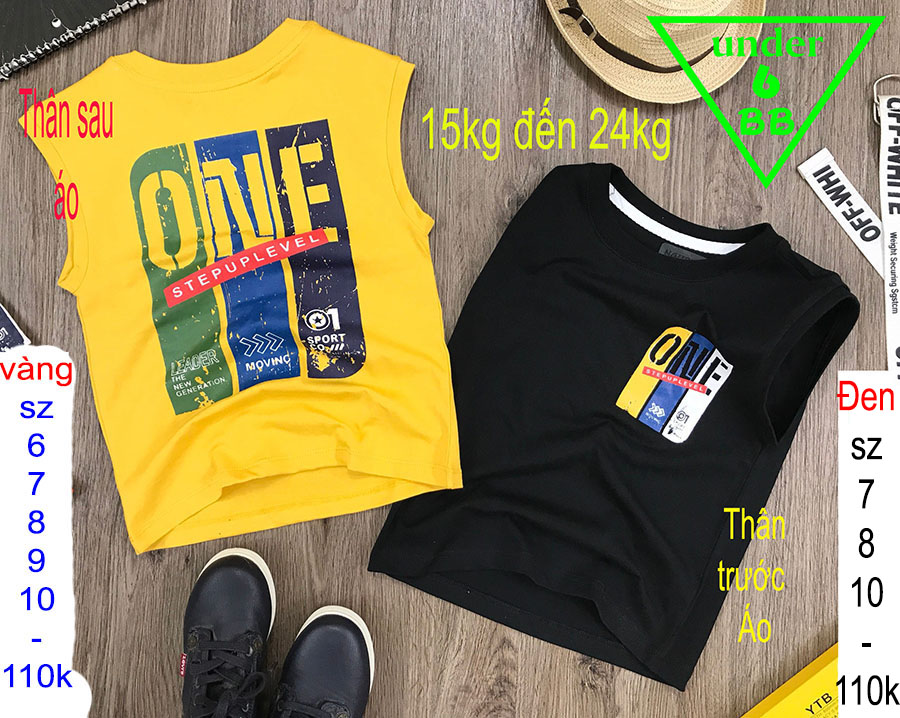 Áo thun sát nách bé trai ( vàng ) in chữ ONE cho bé đi chơi , đi học