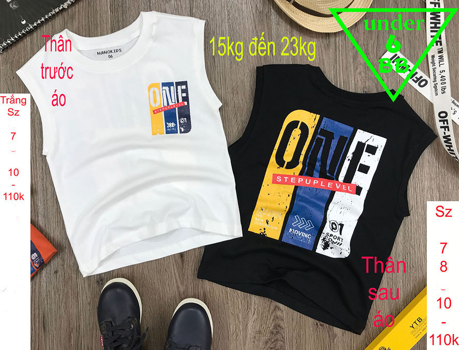 Áo thun sát nách bé trai ( trắng ) in chữ ONE cho bé đi chơi , đi học